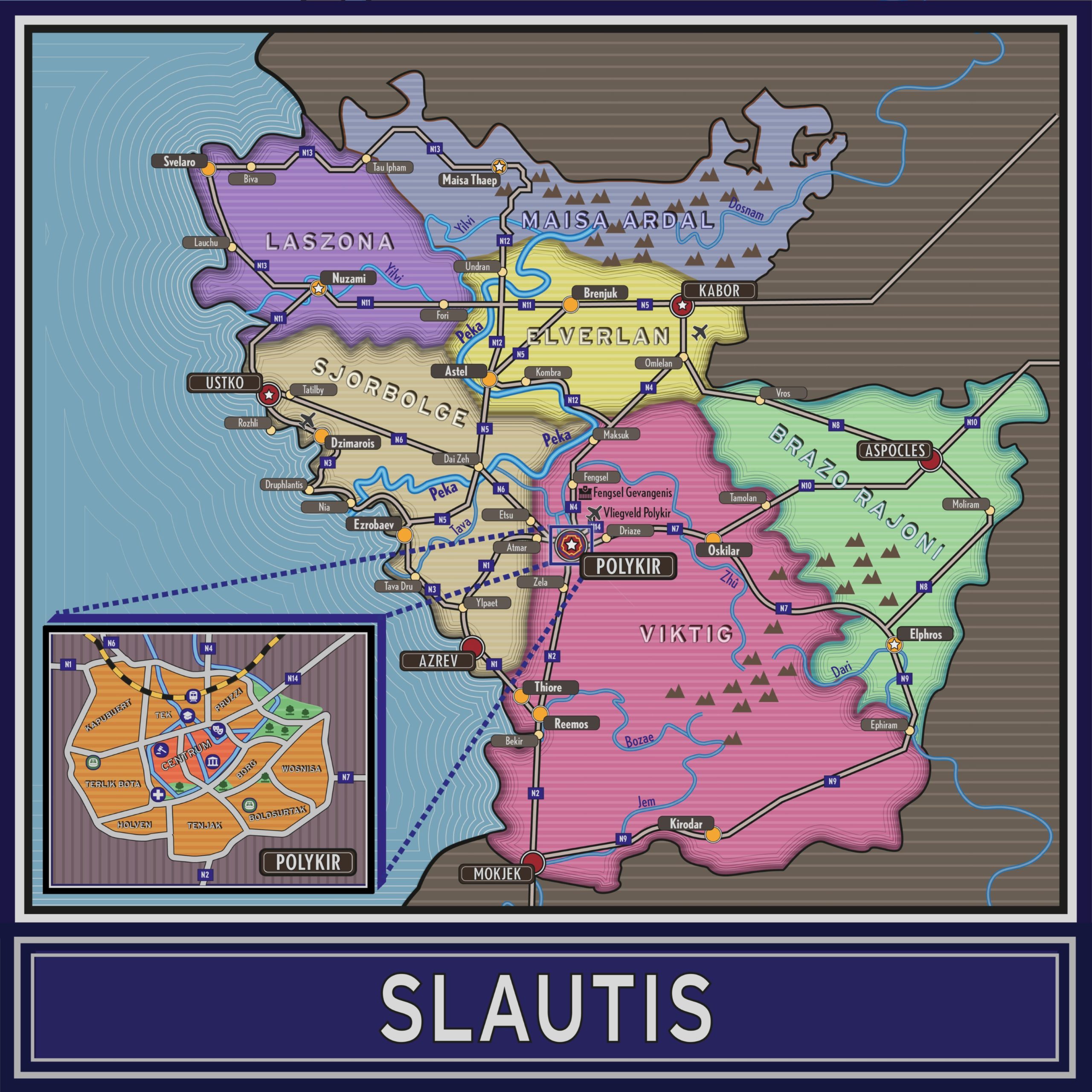 De verhalen spelen zich af in Slautis, een fictief land ergens in het oosten van Europa. Het land is (virtueel) het 28e lid van de EU. Met enige fantasie is het land een mix van een aantal verschillende landen binnen Europa. De 3,4 miljoen inwoners, waarvan de meesten meertalig zijn opgevoed, wonen voornamelijk in het westen van het land, dat een relatief lange kustlijn heeft. De belangrijkste steden zijn Polykir en Ustko.